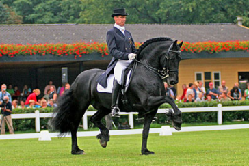 Anita's dam sire Peke 268 was known for having the most beautiful head of all living Friesian sires. Peke reached the “Honorary Class” for driving – very few Friesians ever reached this honor. He was also a good dressage horse. Peke was known for passing on beautiful heads and necks, strong hindquarters, exceptionally good gaits – especially the walk and trot, and excellent leg conformation. His offspring have performed well in dressage and driving.