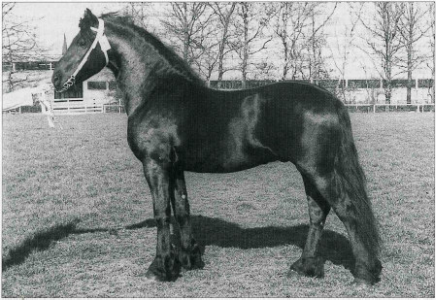 Peke 268 reached the “Honorary Class” for driving – very few Friesians ever reached this honor. Peke was known for passing on beautiful heads and necks, strong hindquarters, exceptionally good gaits – especially the walk and trot, and excellent leg conformation.
