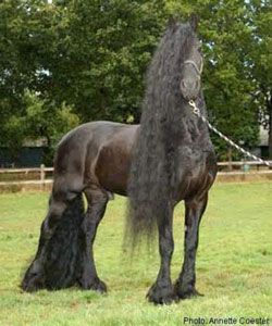 Anton is a very talented dressage horse and has successfully competed at "ZZ" Level (Fourth Lever ) dressage in Holland. He passes on his classic Friesian