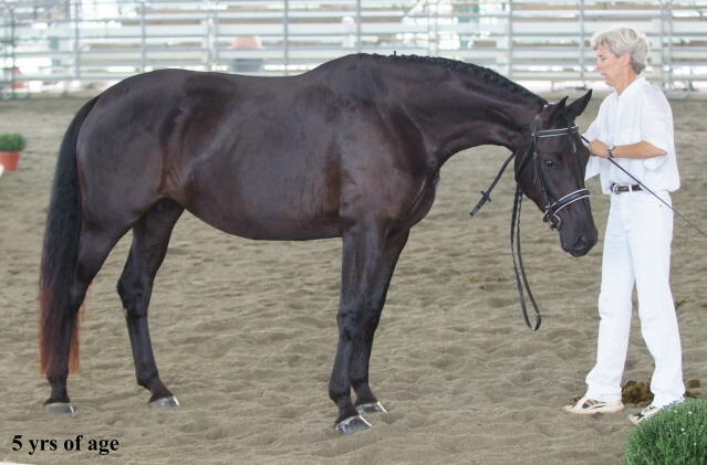 Pablito was in the top of his age group at his 100-day test in Adelheidsdorf, showing his versatility in ridebility and jumping. He has and is producing many Inspection and USDF champions. |