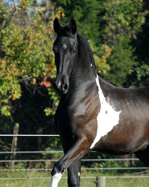 This is an outstanding young stallion by Adonai, making 'King' the first of the 3rd generation of Nico's Pinto Friesian offspring here at Hidden Promise. Adonai has done a wonderful job passing along the adored and respected traits that we so love about him and his sire, Nico. Nico has been extremely pre-potent and consistent in our breeding program, and we were so pleased to find the same results with Adonai. So, needless to say ... we are thrilled with his first offspring, King of Kings. This promising stallion has excellent hock action and activity, as well as balanced, tremendous self carriage... not a surprise as I enjoy the beautifully balanced canter of his sire and grand sire each time I ride them!